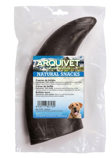 CORNO DI BUFALO VUOTO STRONG - linea Arquivet NaturaLunghezza: 20/28 CM - vuoto internamentePer cani razze medie e grandiIl Corno di bufalo è un prodotto 100% naturale, contiene molte sostanze nutrienti e minerali, aiuta la pulizia dentale e non si scheggia. Particolarmente duro al suo interno e saporito, lo rendono un elemento indispensabile per la salute e la pulizia dei denti evitando il tartaro. Lo snack è completamente ipoallergenico, praticamente privo di grassi ed è quindi utilissimo anche per soddisfare quei cani che non devono ingrassare.