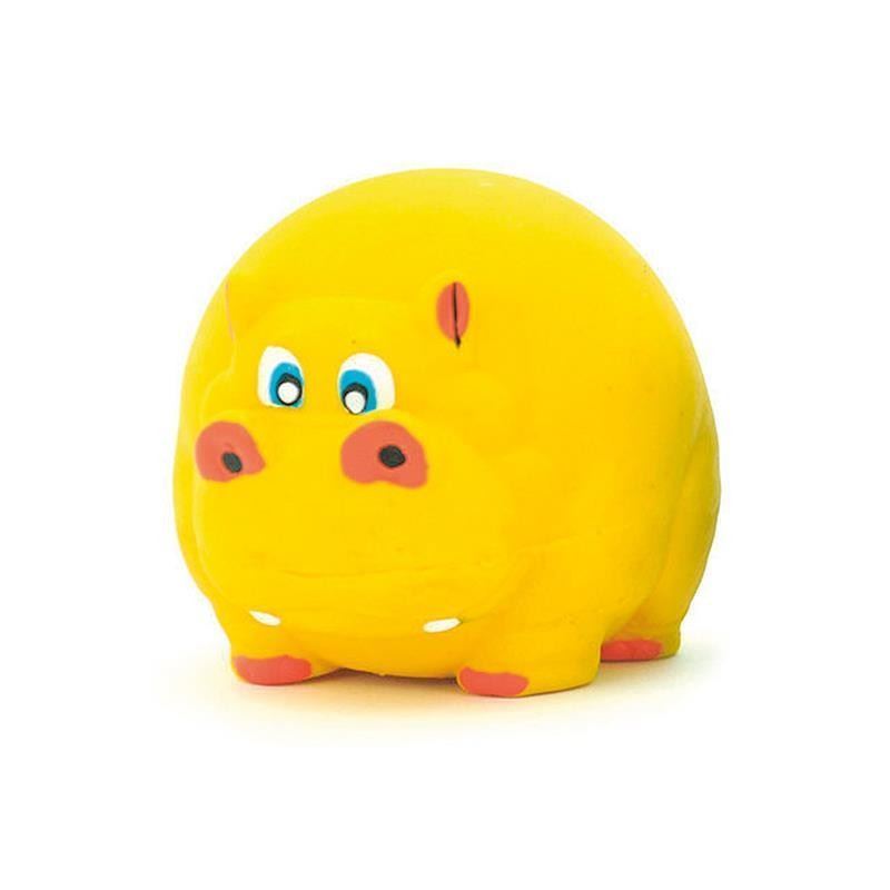 Giocattolo a palla a forma di ippopotamo giallo, realizzato in lattice. Intrattenimento garantito, mentre il cane si allena e si rilassa. Con suono quando viene premuto.