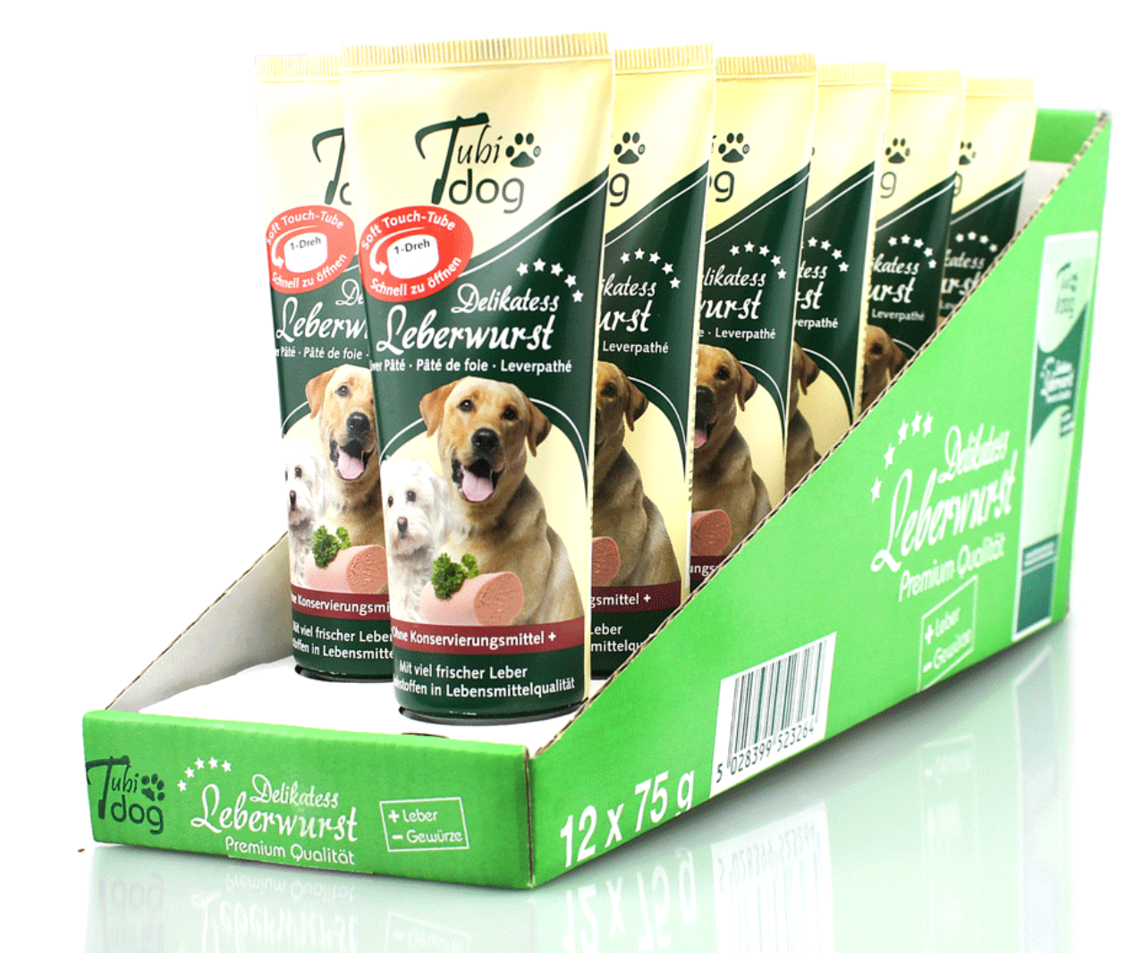 Deliziosa crema di fegato bovino Tubidog in tubouna ricompensa innovativa e pulita per tutti i cani Nell'addestramento, nell'educazione e nell'addestramento del cane, il rinforzo positivo sotto forma di bocconcini è un must assoluto. Con la deliziosa prelibatezza della salsiccia di fegato Tubidog dal tubo, gratificare ora è ancora più facile.Realizzato con la migliore carne fresca e fegato fresco di qualità alimentare, nessun cane può resistere a questo trattamento speciale. Basta svitare il coperchio, premere il tubo e il cane lecca la sua deliziosa ricompensa direttamente dal tubo. Il fastidioso sgretolamento e il grasso nelle mani e nelle tasche della giacca appartengono al passato: la deliziosa salsiccia di fegato può essere dosata in modo pulito e semplice. Grazie ai suoi ingredienti sani e freschi, Tubidog è estremamente ben accettato dai cani ed è così irresistibile che anche i cani disobbedienti mangeranno dalla tua mano. La salsiccia di fegato Tubidog è prodotta in Germania senza esaltatori di sapidità, conservanti o coloranti. Contenuto 75 g per tubo. - Senza additivi artificiali come conservanti o esaltatori di sapidità - Senza glutine e lattosio - Sviluppato e prodotto in Germania Ottima accettazione (dimostrata da test) - Pulito e facile da porzionare Non più unto e sbriciolato Caratteristiche: La salsiccia di fegato Tubidog è senza glutine, senza prodotti chimici e conservanti. Composizione: fegato bovino, carne, grasso animale, brodo di carne e spezie